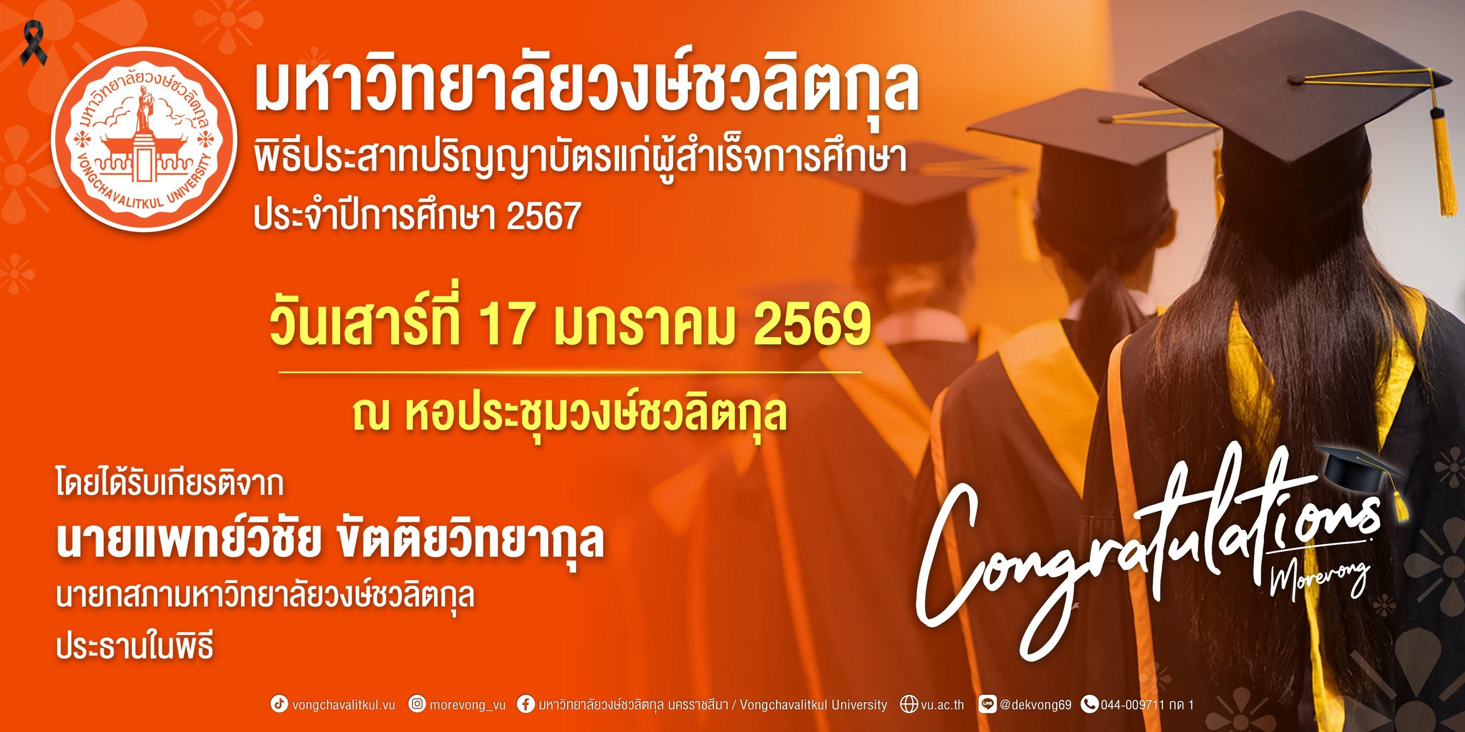 #MORVONG #Congratulations #พิธีประสาทปริญญาบัตรแก่ผู้สำเร็จการศึกษา #ปีการศึกษา2567 #VongchavalitkulUniversity #VU #มหาวิทยาลัยวงษ์ชวลิตกุล #มว