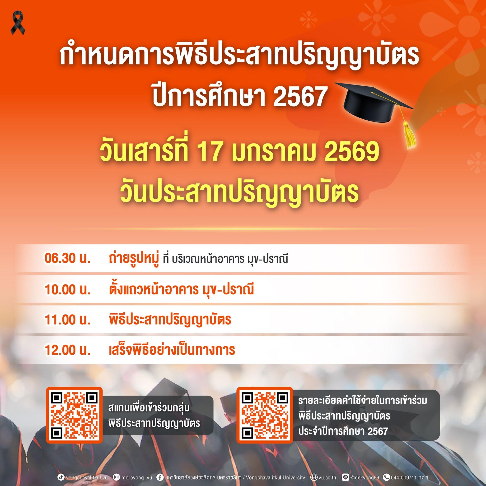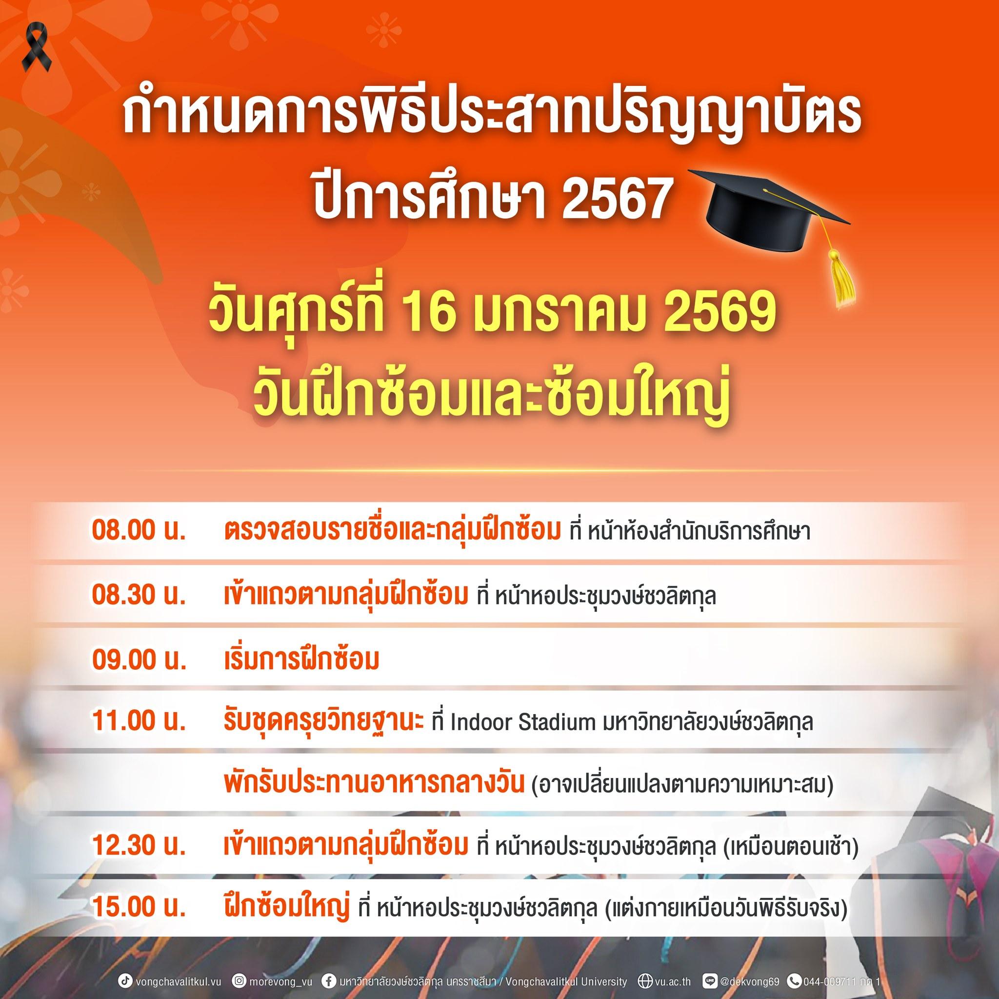 💐กำหนดการในพิธีประสาทปริญญาบัตรแก่ผู้สำเร็จการศึกษา ประจำปีการศึกษา 2567✨