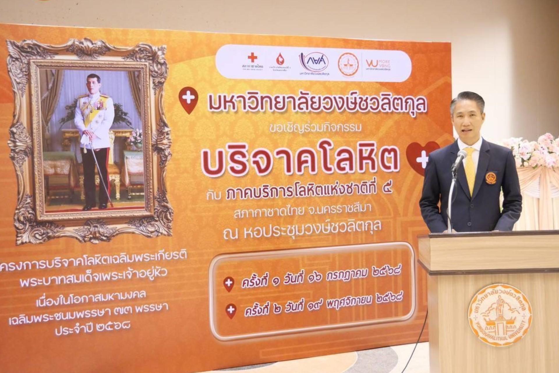 ❤️ วันที่ 16 กรกฎาคม 2568 มหาวิทยาลัยวงษ์ชวลิตกุล ร่วมกับภาคบริการโลหิตแห่งชาติที่ 5 จังหวัดนครราชสีมา สภากาชาดไทย จัดกิจกรรมบริจาคโลหิตเฉลิมพระเกียรติพระบาทสมเด็จพระปรเมนท รามาธิบดีศรีสินทรมหาวชิราลงกรณ พระวชิรเกล้าเจ้าอยู่หัว เนื่องในวันเฉลิมพระชนมพรรษา 73 พรรษา ซึ่งได้ให้การสนับสนุนบุคลากรทางการแพทย์ อุปกรณ์ และการดำเนินการตรวจคัดกรอง ได้โลหิตทั้งหมด 147 ยูนิต