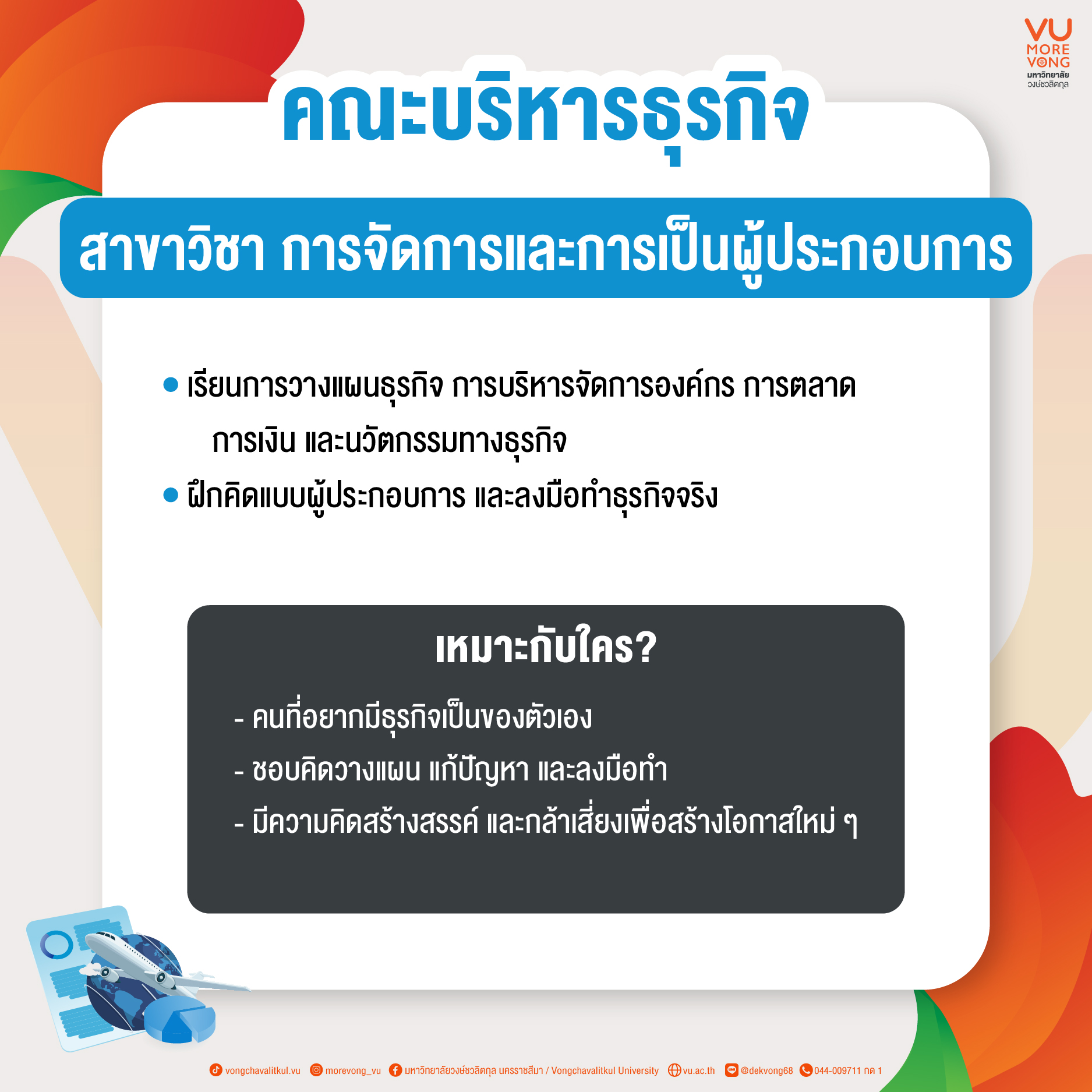 สาขาวิชา การจัดการและการเป็นผู้ประกอบการ