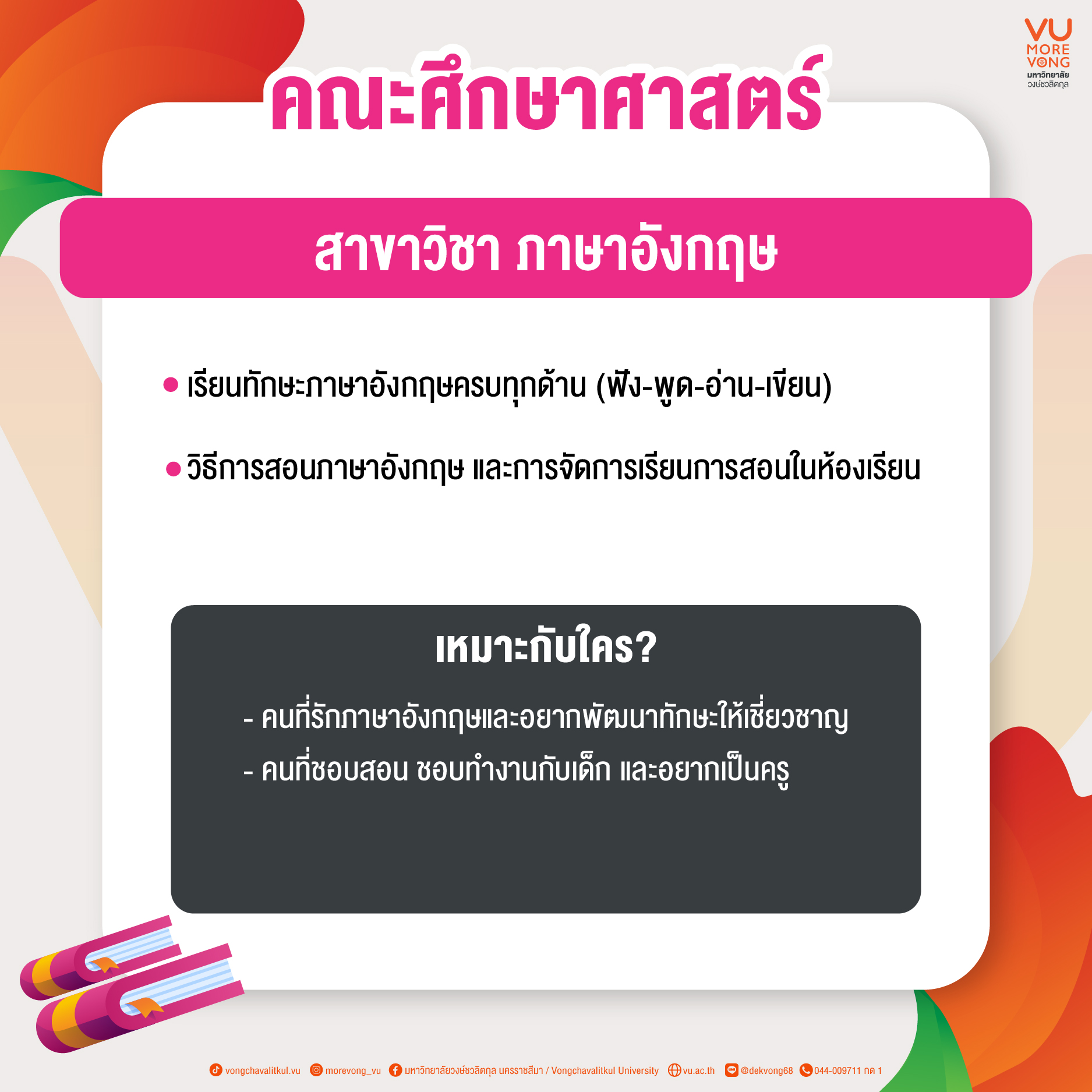 #เด็กวงษ์มาแรง #เรียนสนุกอนาคตปัง #MOREVONG #เรียนต่อปริญญาตรี #Vongchavalitkuluniversity #VU #นครราชสีมา #มหาวิทยาลัยวงษ์ชวลิตกุล #41ปีมหาวิทยาลัยวงษ์ชวลิตกุล #มหาวิทยาลัยเอกชนแห่งแรกในภาคตะวันออกเฉียงเหนือ #เลือกเรียนไม่หลงทาง
