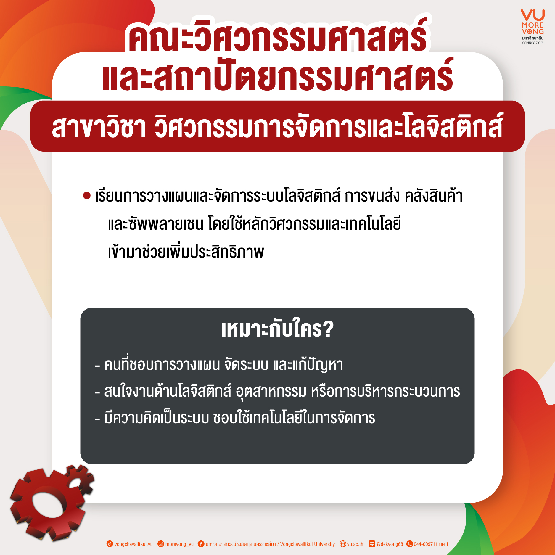 สาขาวิชา วิศวกรรมการจัดการและโลจิสติกส์