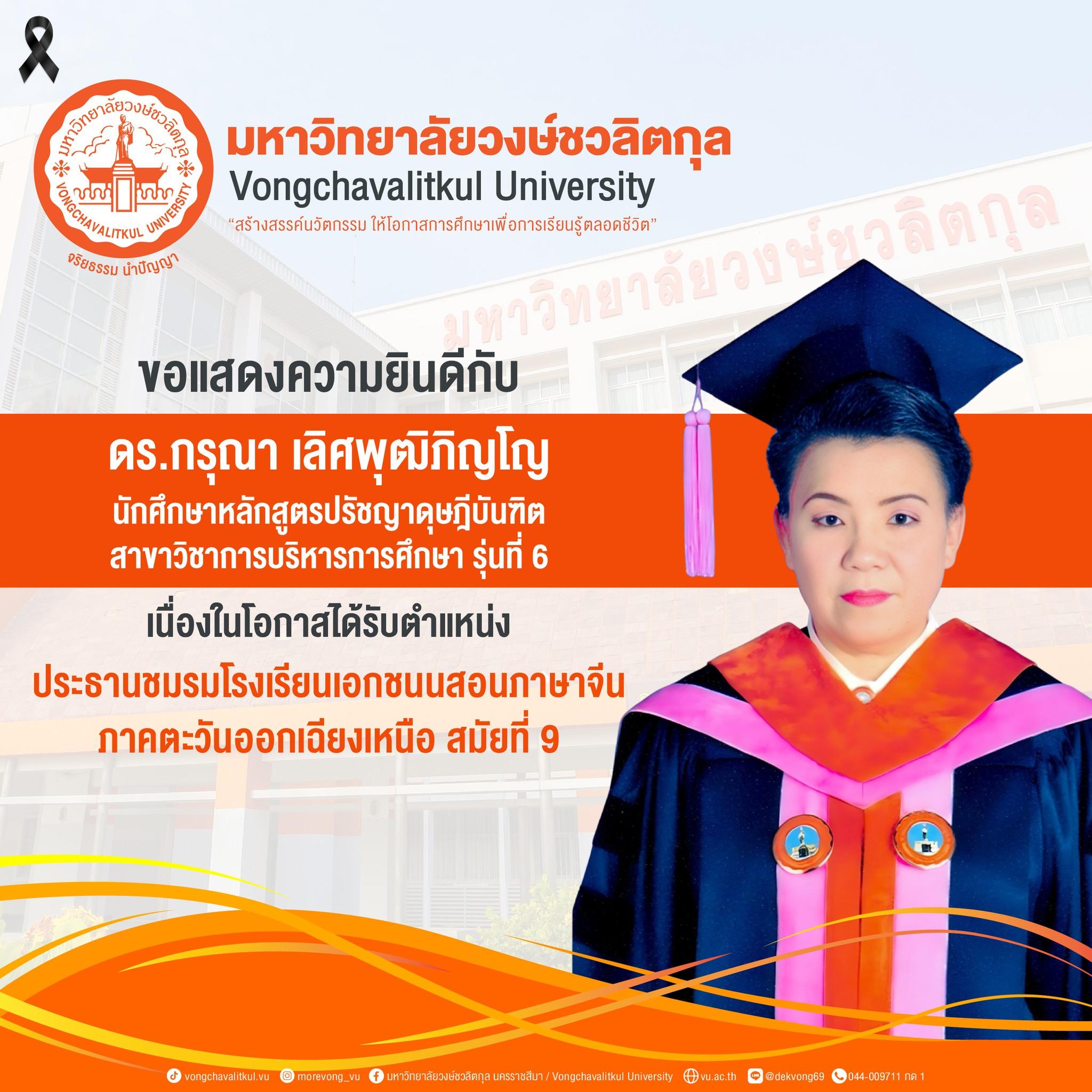 ดร.กรุณา เลิศพุฒิภิญโญ ศิษย์เก่าหลักสูตรปรัชญาดุษฎีบัณฑิต สาขาวิชาการบริหารการศึกษา รุ่นที่ 6