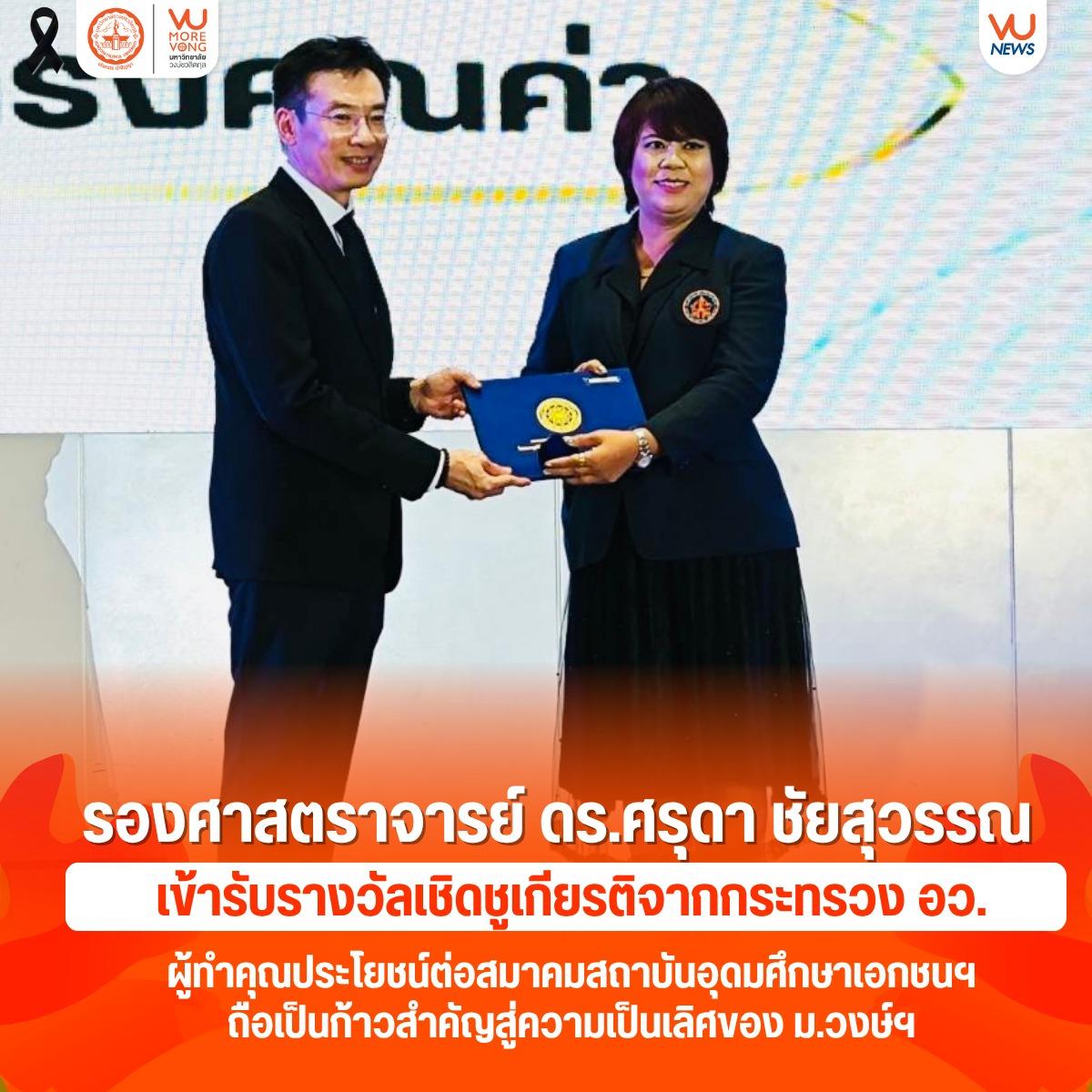 🧡 มหาวิทยาลัยวงษ์ชวลิตกุล ขอแสดงความยินดีกับ รองศาสตราจารย์ ดร.ศรุดา ชัยสุวรรณ ผู้ช่วยอธิการบดีฝ่ายวิชาการ มหาวิทยาลัยวงษ์ชวลิตกุล ในโอกาสเข้ารับรางวัลเชิดชูเกียรติ