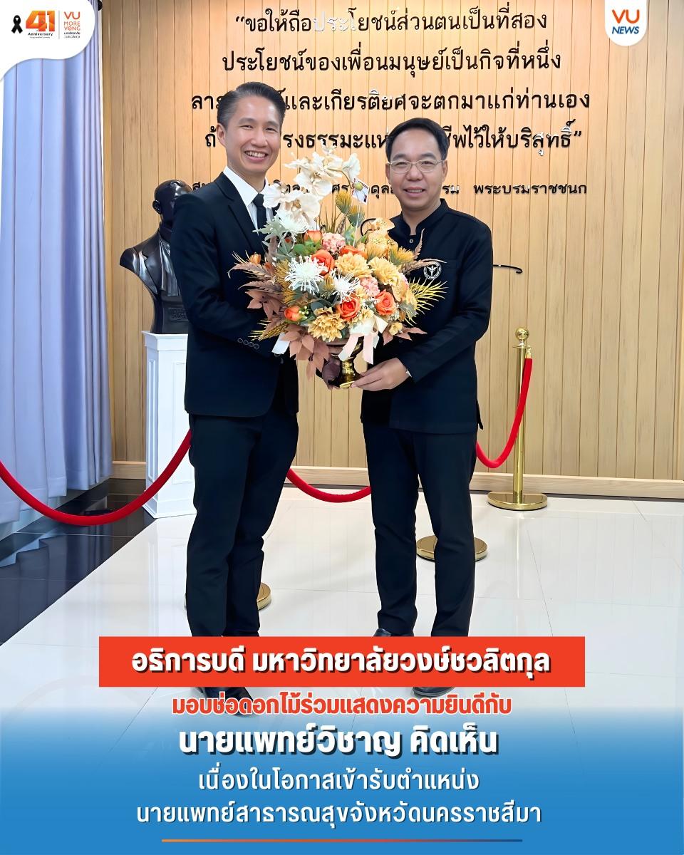 💐 ผศ.ดร.ณัฐวัฒม์ วงษ์ชวลิตกุล อธิการบดีมหาวิทยาลัยวงษ์ชวลิตกุล มอบช่อดอกไม้แสดงความยินดีกับ นายแพทย์วิชาญ คิดเห็น