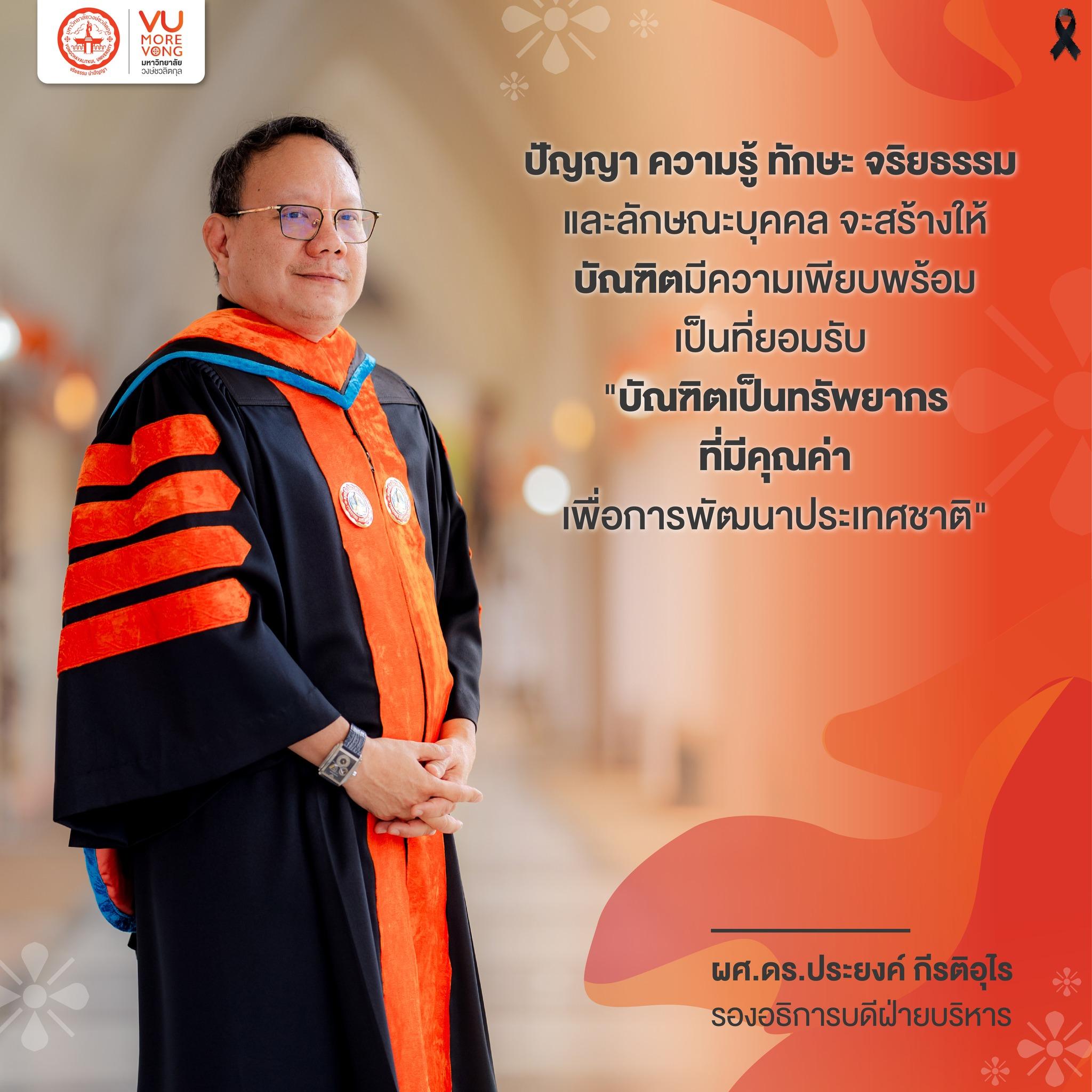 ✨ ปัญญา ความรู้ ทักษะ จริยธรรม และลักษณะบุคคล จะสร้างให้บัณฑิตมีความเพียบพร้อมเป็นที่ยอมรับ "บัณฑิตเป็นทรัพยากรที่มีคุณค่าเพื่อการพัฒนาประเทศชาติ