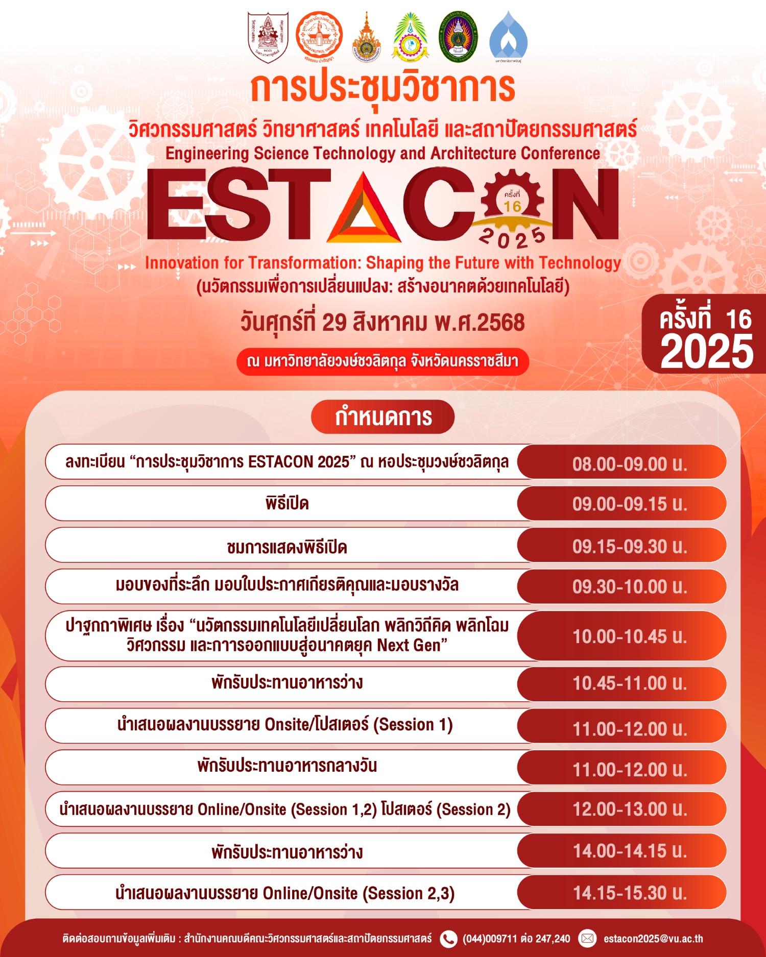 📢 ประกาศรายชื่อผู้นำเสนอบทความ 📑 ในงานประชุมวิชาการ ESTACON 2025 🎓✨