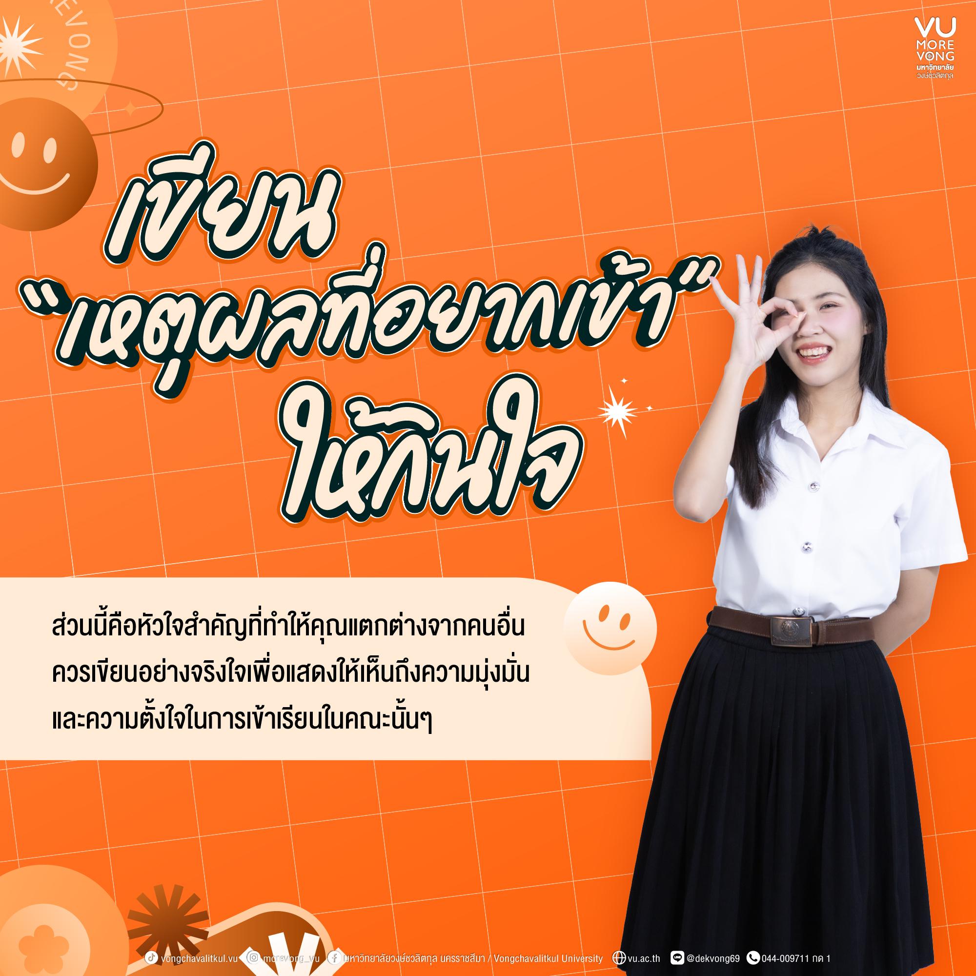 #เรียนต่อปริญญาตรี #DEKVONG69 #Vongchavalitkuluniversity