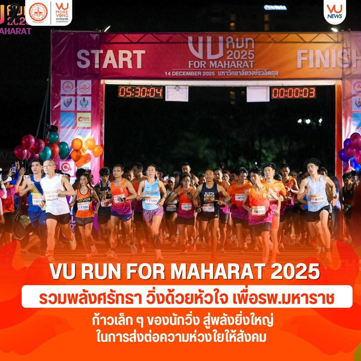 ❤️ วันที่ 14 ธันวาคม 2568 มหาวิทยาลัยวงษ์ชวลิตกุล จัดกิจกรรมวิ่งการกุศลครั้งยิ่งใหญ่ “VU RUN FOR MAHARAT 2025” รวมพลังนักวิ่ง นักศึกษา บุคลากร และประชาชนจากทุกภาคส่วน ร่วมออกกำลังกายเพื่อสุขภาพ พร้อมส่งต่อพลังแห่งการให้และความห่วงใยสู่สังคม โดยรายได้จากการจัดกิจกรรมสมทบสนับสนุนการดำเนินงานของ โรงพยาบาลมหาราชนครราชสีมา
