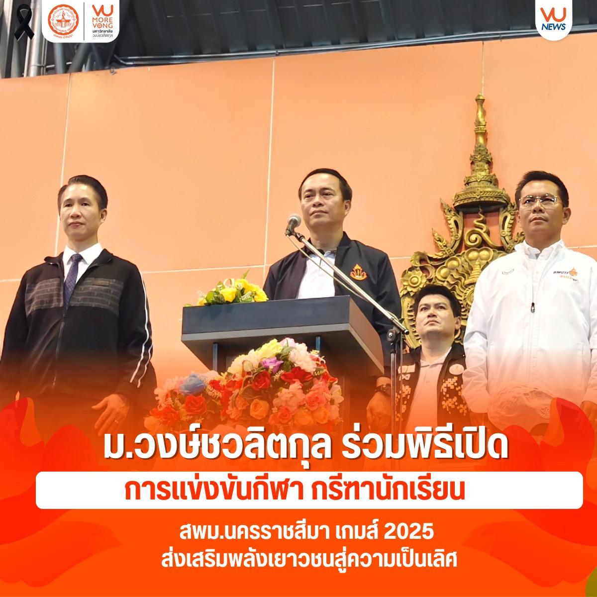 🔸 ในการนี้ ผู้ช่วยศาสตราจารย์ ดร.ณัฐวัฒม์ วงษ์ชวลิตกุล อธิการบดีมหาวิทยาลัยวงษ์ชวลิตกุล ได้เข้าร่วมพิธีเปิดการแข่งขันฯ ร่วมเป็นเกียรติในกิจกรรมสำคัญ พร้อมร่วมชมขบวนนักกีฬาและพิธีการต่าง ๆ ซึ่งสะท้อนถึงพลังความสามัคคี ความมุ่งมั่น และจิตวิญญาณแห่งการกีฬา ของเยาวชนในจังหวัดนครราชสีมา