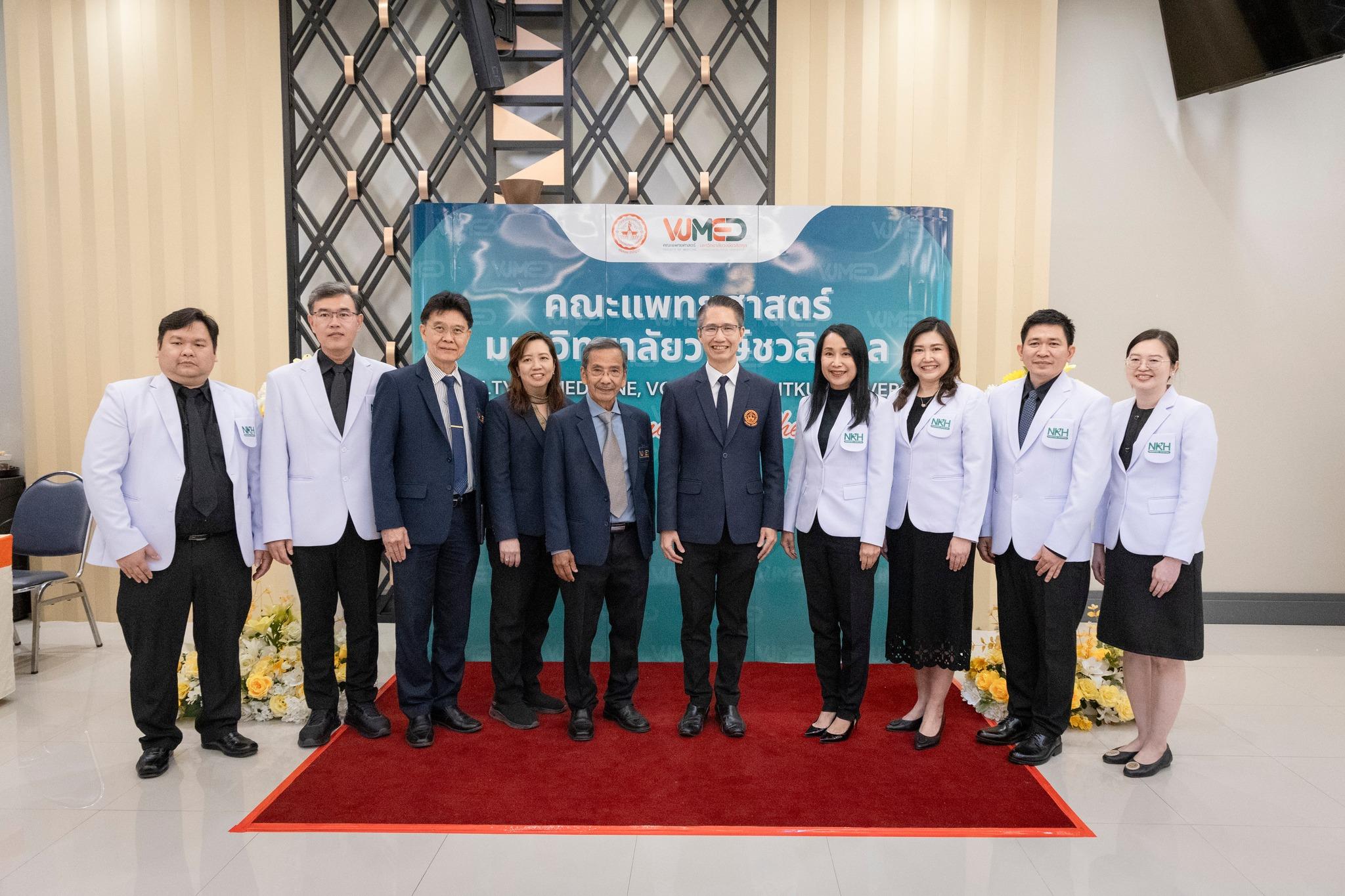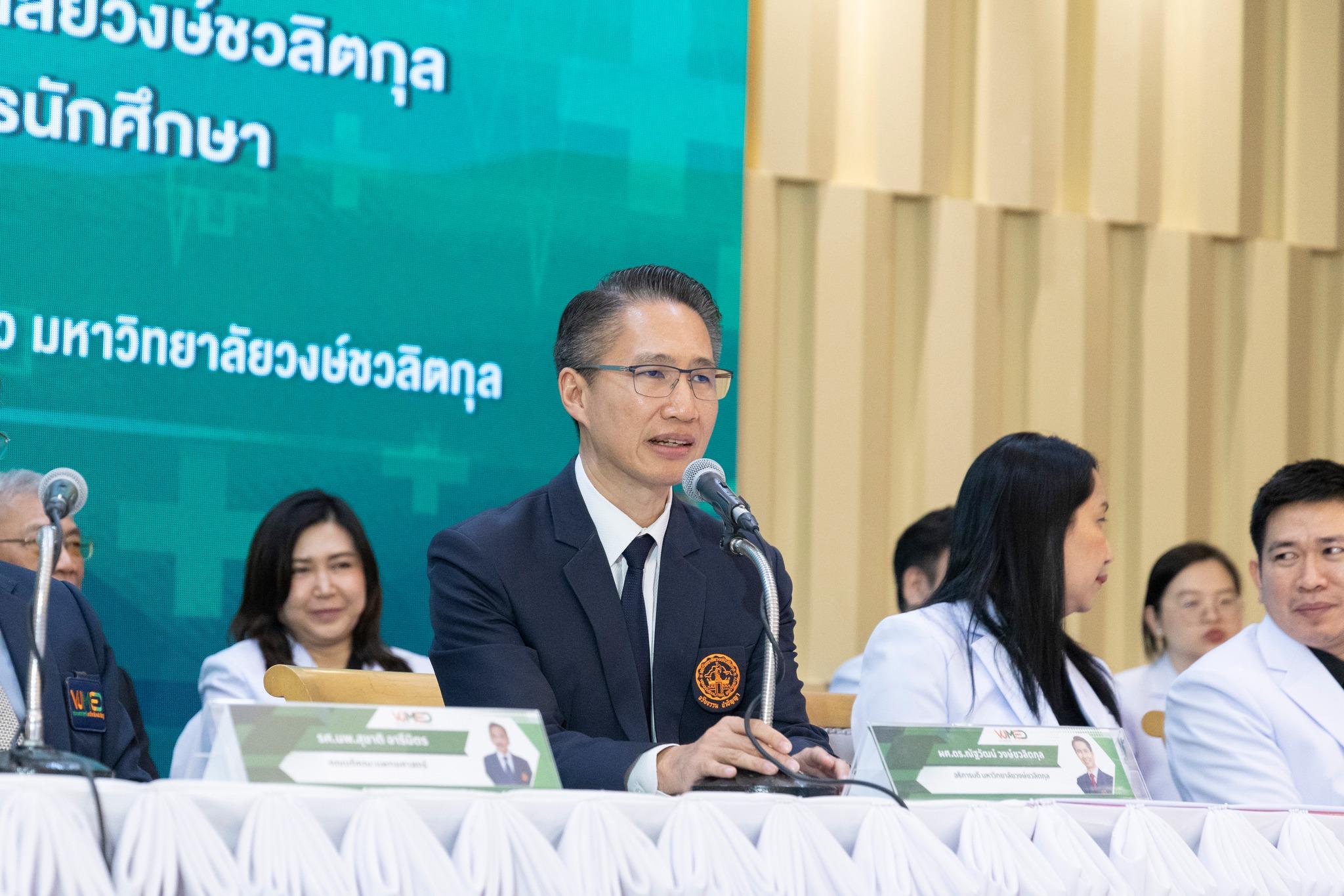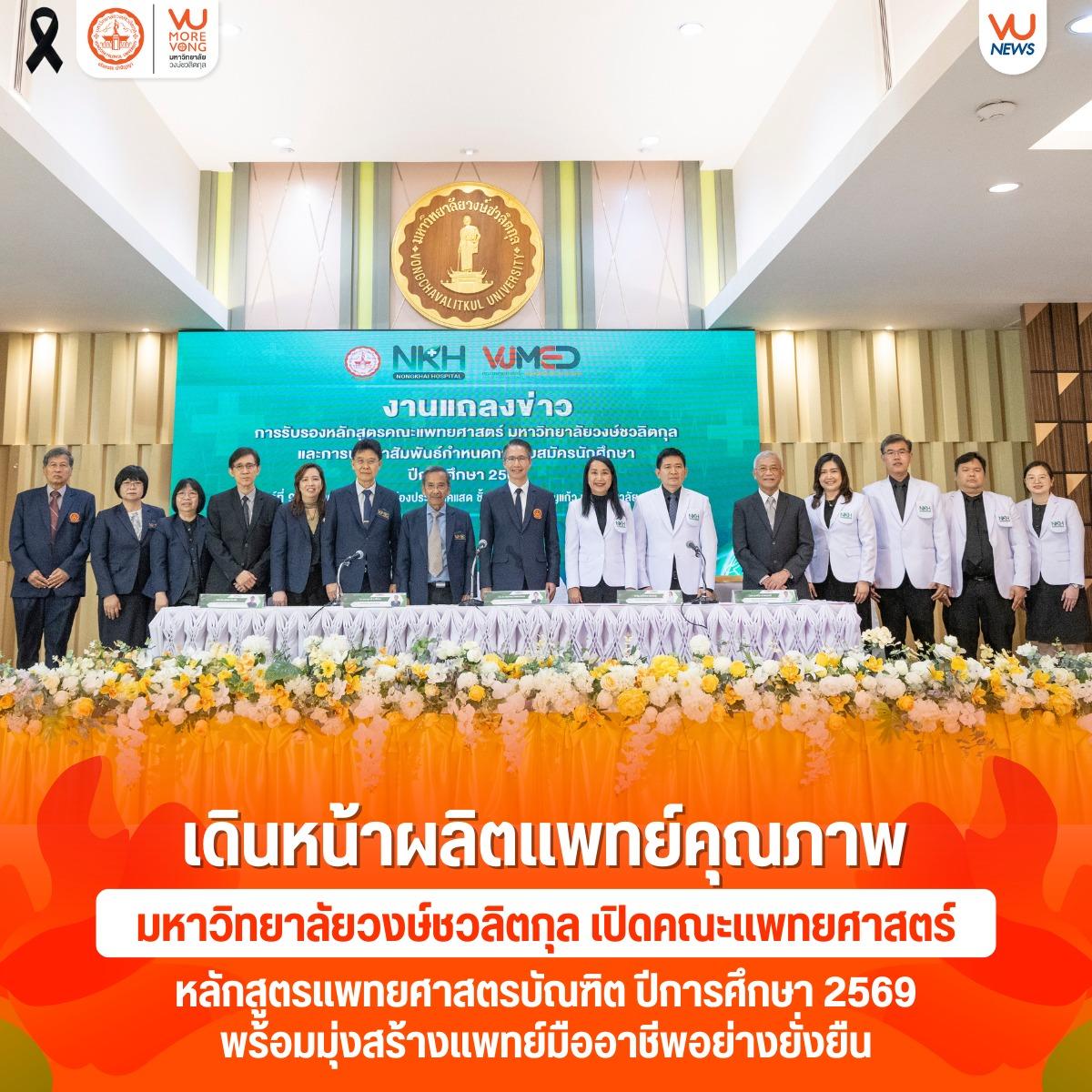 ✨ การแถลงข่าวในครั้งนี้ได้รับเกียรติจาก ผศ.ดร.ณัฐวัฒม์ วงษ์ชวลิตกุล อธิการบดีมหาวิทยาลัยวงษ์ชวลิตกุล เป็นประธานการแถลงข่าว ร่วมด้วย รศ.นพ.สุชาติ อารีมิตร คณบดีคณะแพทยศาสตร์ มหาวิทยาลัยวงษ์ชวลิตกุล พร้อมด้วย พญ.นฤมล สกุลคู ผู้อำนวยการโรงพยาบาลหนองคาย และ นพ.ธงชัย นาคมนต์ ผู้อำนวยการศูนย์แพทยศาสตร์ศึกษา โรงพยาบาลหนองคาย ซึ่งเป็นหน่วยงานหลักในการจัดการเรียนการสอนภาคคลินิก และคณะผู้บริหาร คณาจารย์ บุคลากร นักศึกษา มหาวิทยาลัยวงษ์ชวลิตกุล