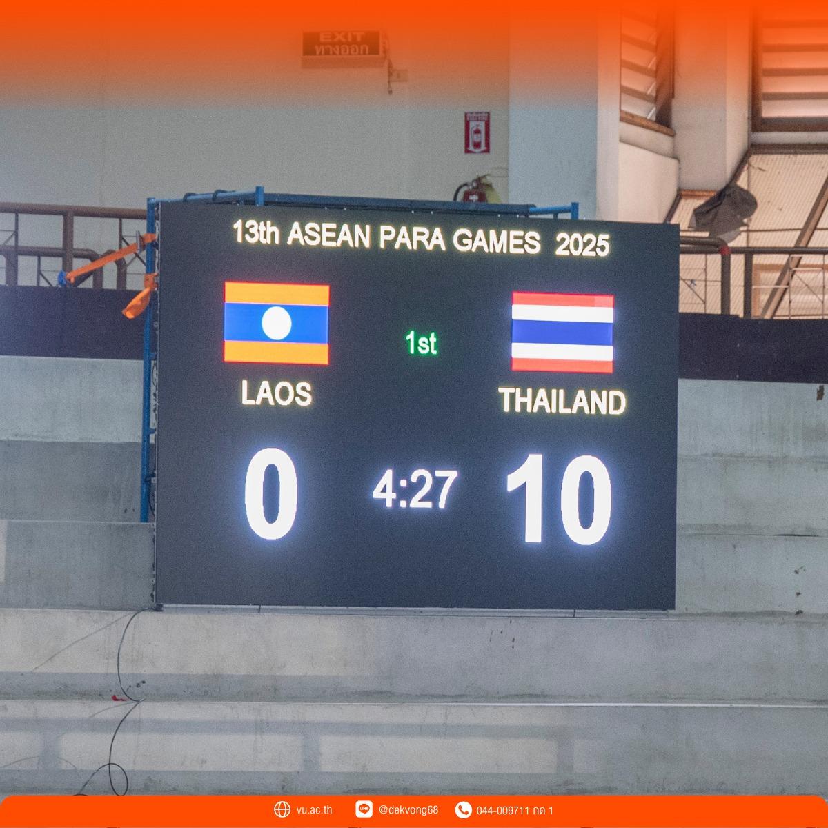 🌈 สำหรับการแข่งขันในวันนี้ เป็นการพบกันระหว่าง ทีมชาติไทย 🇹🇭 และ ทีมชาติลาว 🇱🇦 โดยทีมชาติไทยสามารถทำผลงานได้อย่างยอดเยี่ยม เอาชนะไปด้วยสกอร์ 10 : 0 สร้างความประทับใจแก่ผู้เข้าชมและผู้เกี่ยวข้องภายในสนาม 🤩